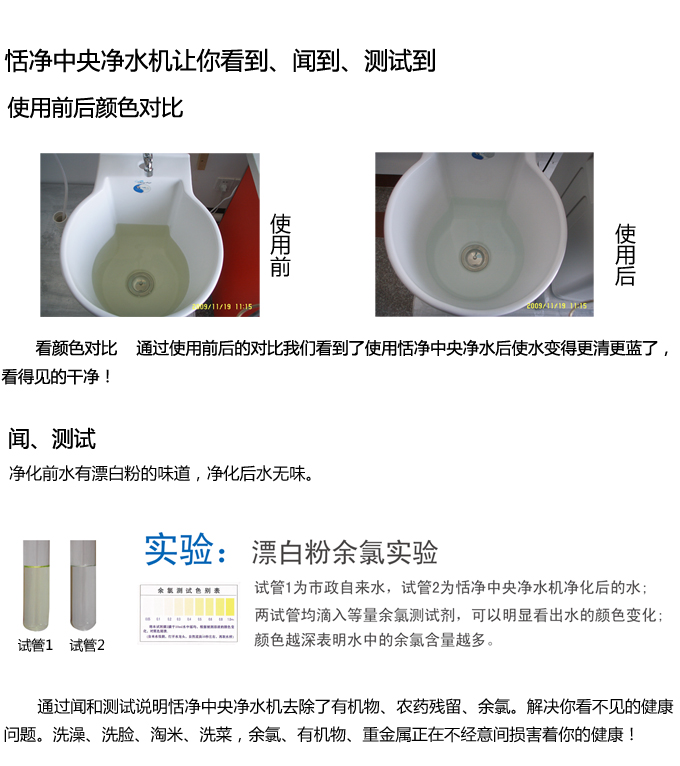 中央凈水機(jī)全自動(dòng)垡頭有效去除水中的異色、異味;進(jìn)一步濾除水中微小雜質(zhì)、膠狀體;去除水中的漂白粉余氯、農(nóng)藥、重金屬;保留對(duì)人體有益的礦物質(zhì)。使水變得碧清、碧藍(lán),去除對(duì)人體有害的物質(zhì)。
